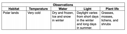 A scientist made the observations below about polar lands. What kind of animals would you most likely find in polar lands?