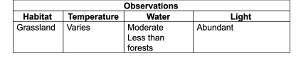 A scientist made the observations below for a certain habitat. Which types of animals are most likely to live in this habitat?