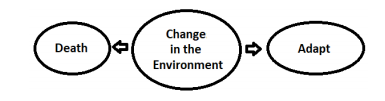 The model below shows the possible responses of animals to a change in Earth’s climate. What would