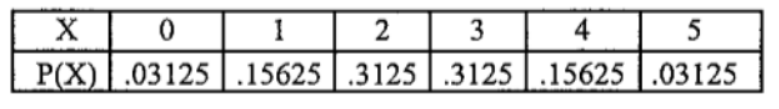 The table below shows the probability distribution for the number of tails (X) in five tosses of a fair coin.