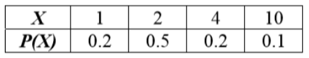 Picard Partners is planning a major investment. The amount of profit X is uncertain but a probabilistic estimate gives the following distribution (in millions of dollars)