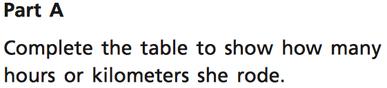 Parte A) Completa la tabla para mostrar cuántas horas o kilómetros recorrió.