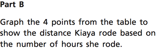Parte B) Grafica los 4 puntos de la tabla para mostrar la distancia que Kiaya recorrió en base al número de horas que cabalgó