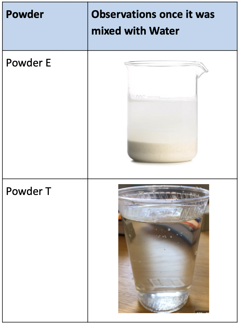 After Valerie mixed Powder T with water, she noticed it just disappeared! Which statement would best explain what really happened to the powder? (2 pts)