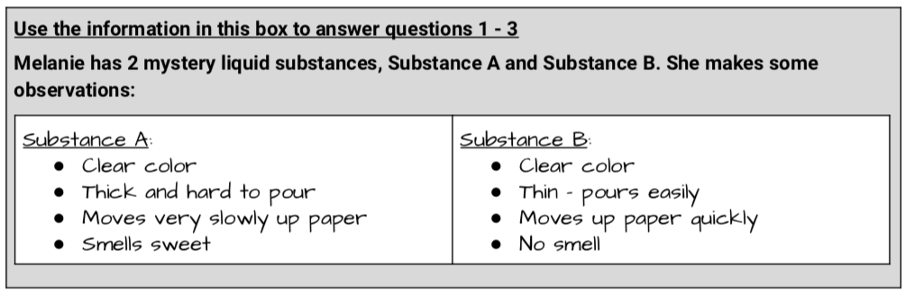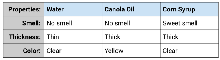 Substance A is most likely which liquid? (2 pts) A. WaterB. Canola OilD. Corn Syrup