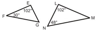 Use the figure above to answer the question.Is triangle EFG similar to triangle LMN?