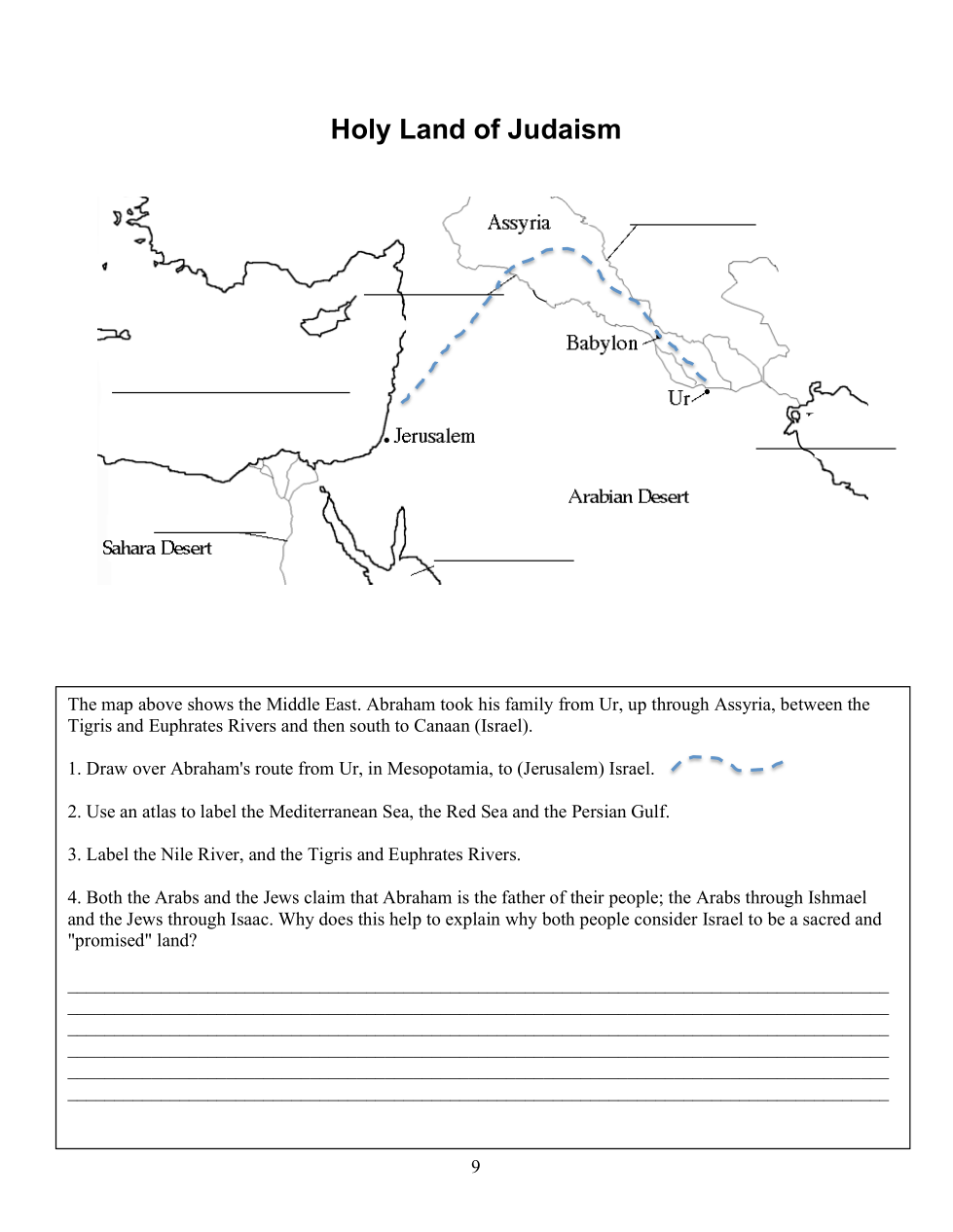 The story of Abraham, the 12 tribes of Israel and a map of the area.