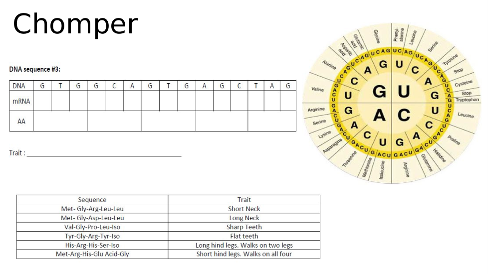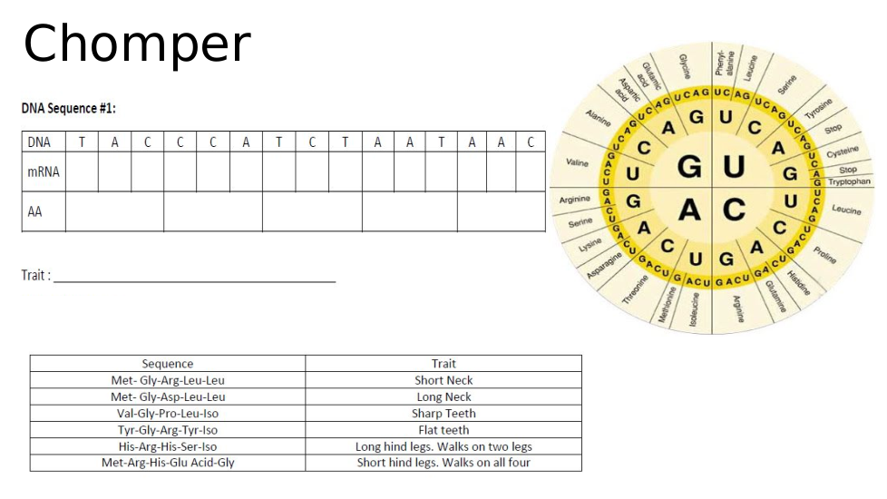 The original dinosaur has a short neck, flat teeth, and short hind legs. How is Chomper different from the original dinosaur?