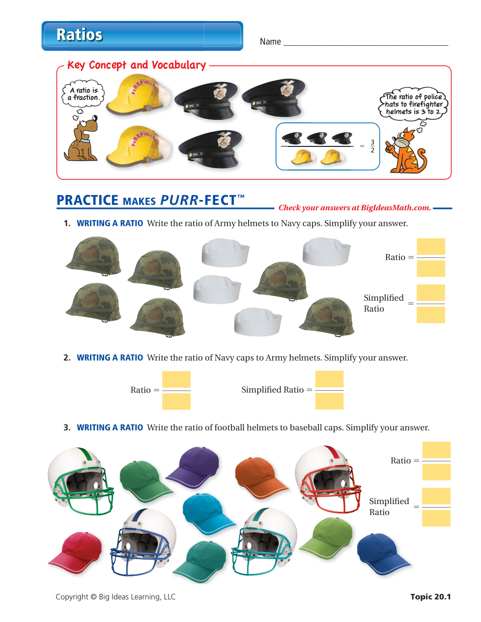 What is the SIMPLIFIED ratio of football helmets to baseball caps?