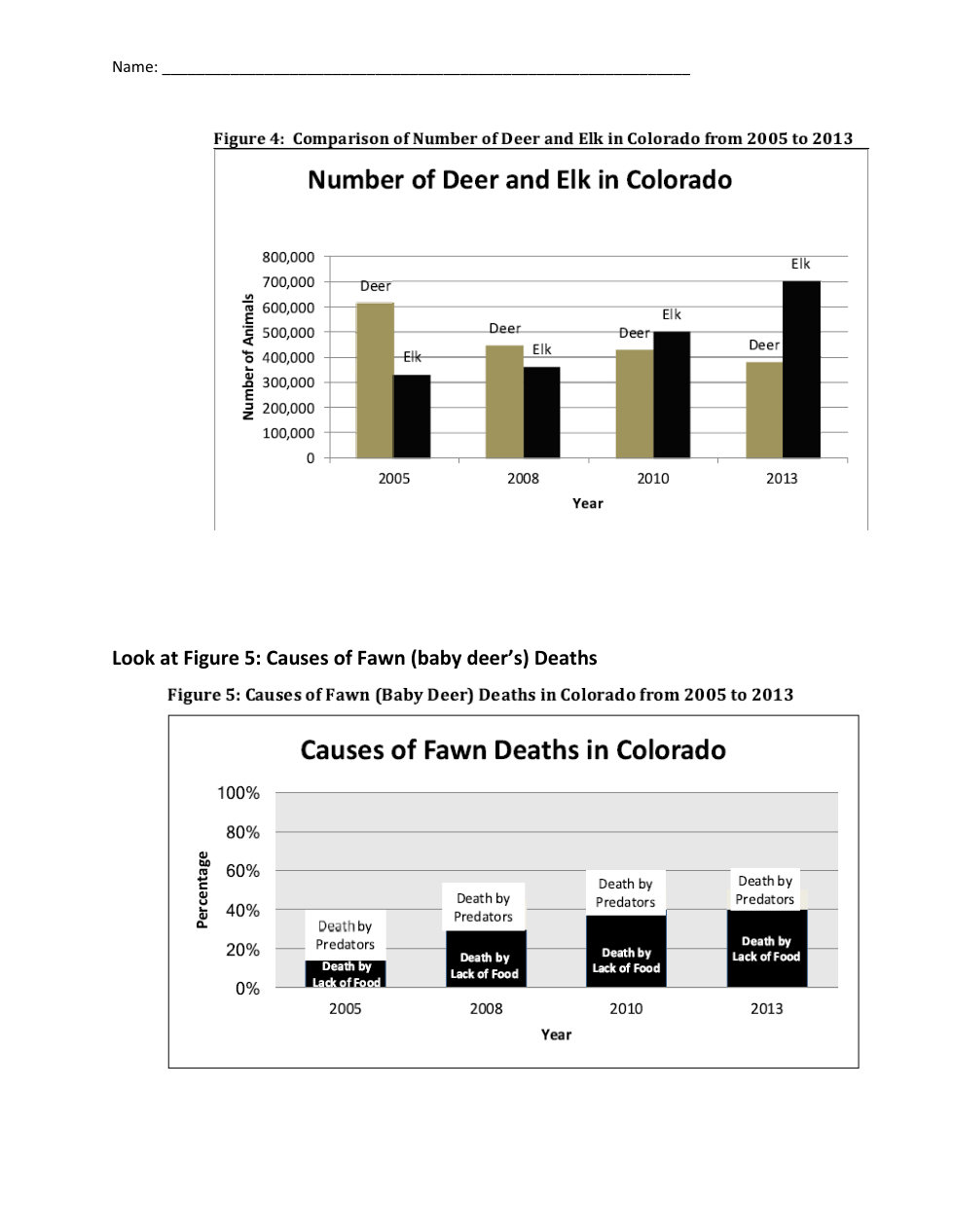 Look at Figure 1 (Change in number of deer in Colorado): What happened to the number of deer from 2005 to 2013?