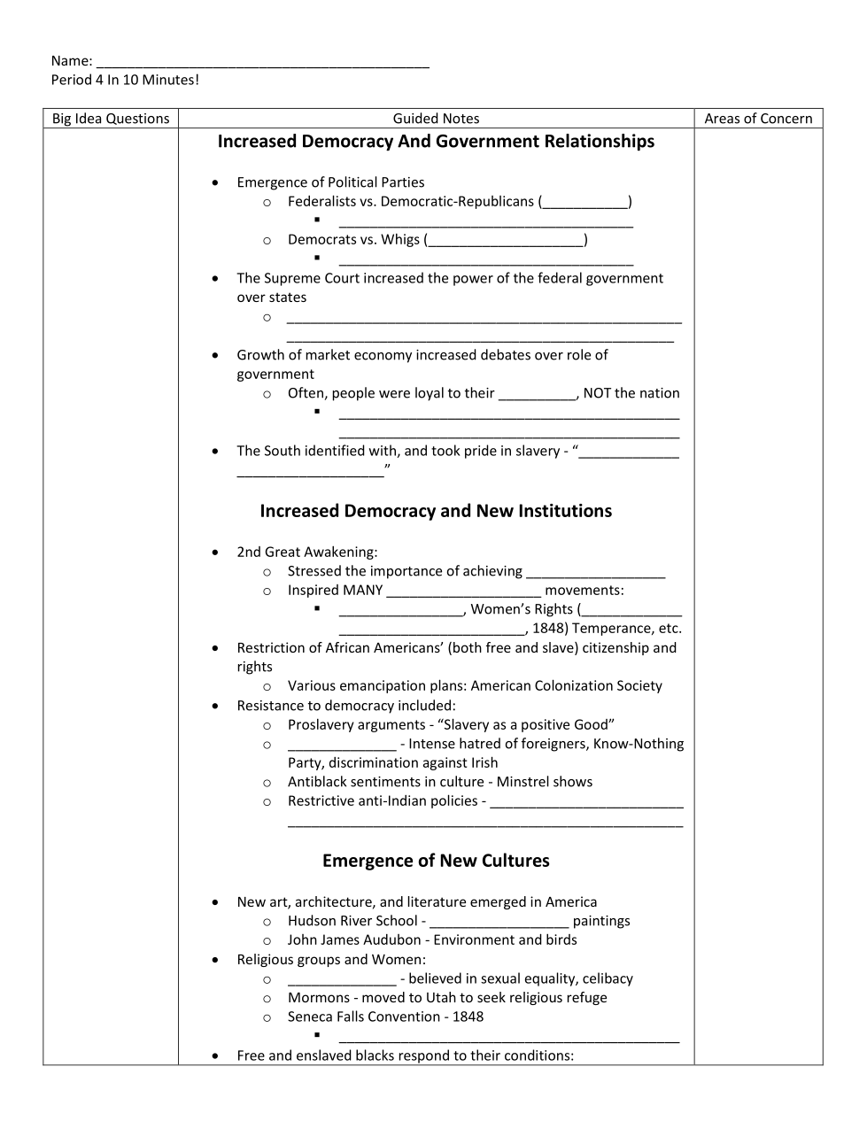 What topics are you concerned about from Period 4 that you would like to review in class?