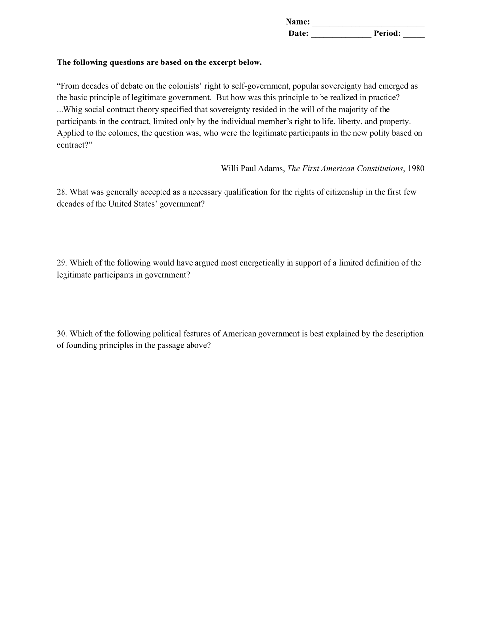 The character of the American Revolution and earliest American government, as described here, can most closely be attributed to