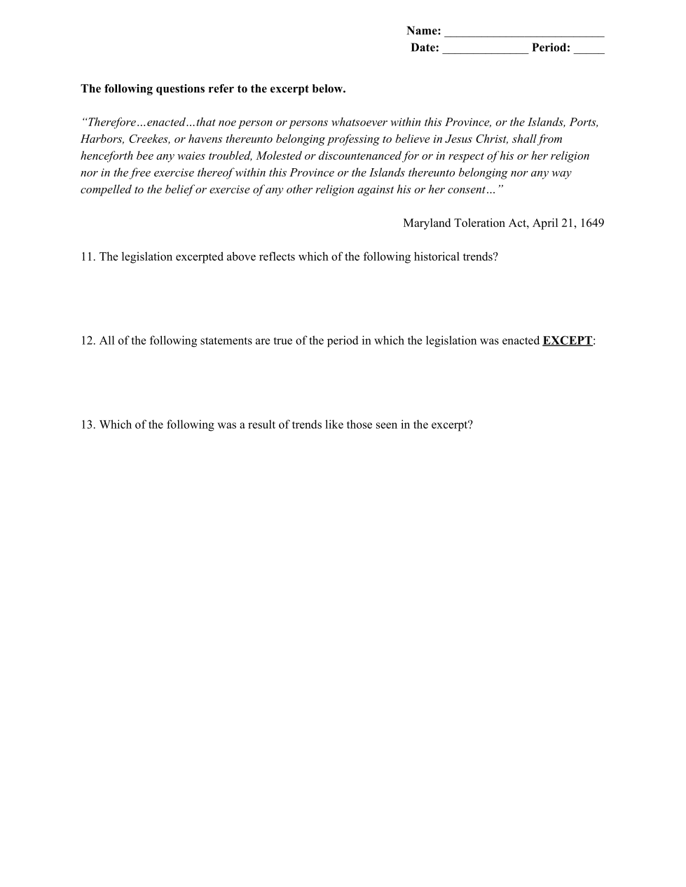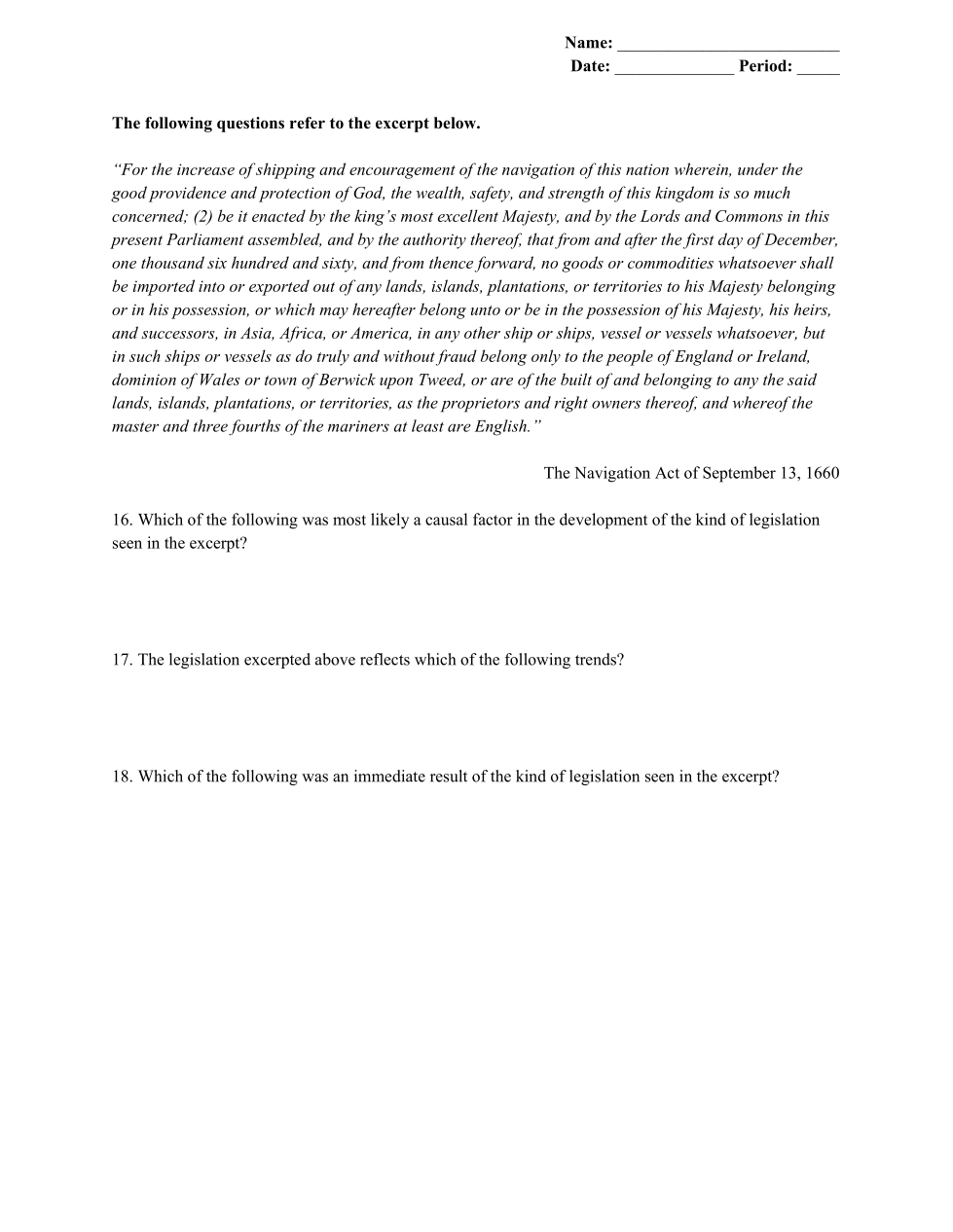 Which of the following was an immediate result of the kind of legislation seen in the excerpt?