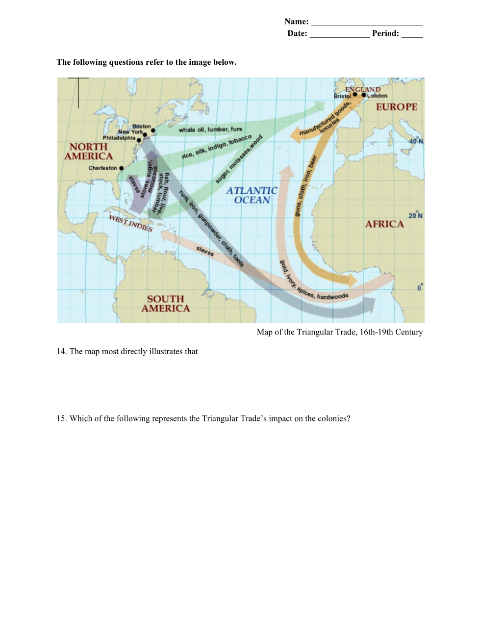 Which of the following represents the Triangular Trade’s impact on the colonies?