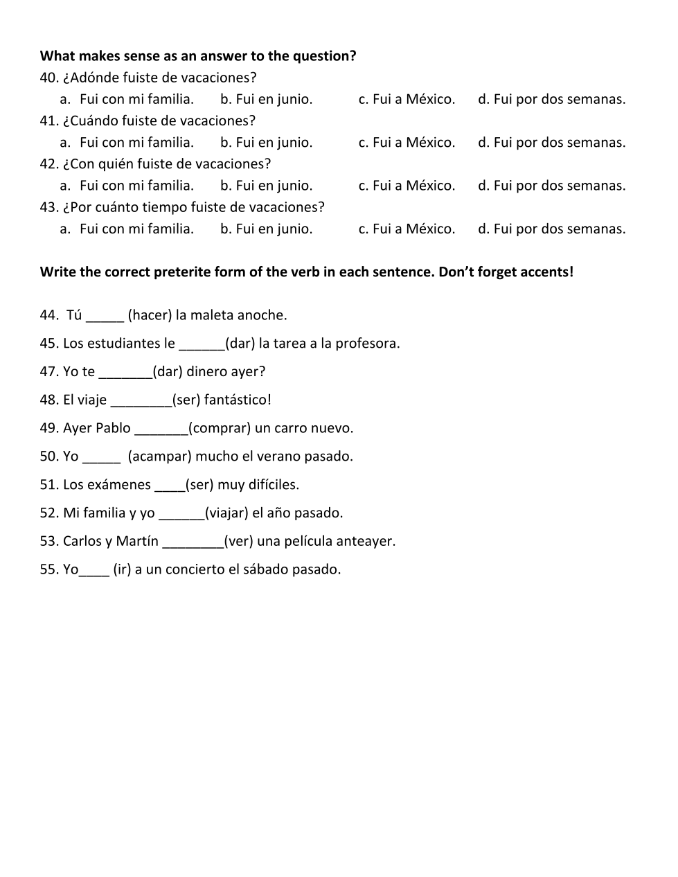 Type the correct form of the verb in the preterite. Don't forget accents!