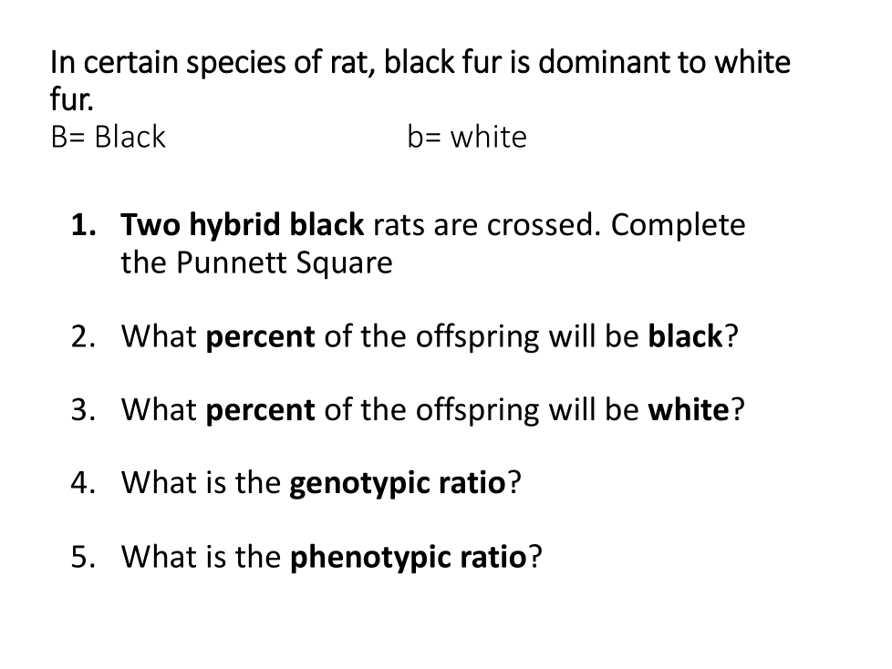 Draw the Punnett Square below. Hybrid is another name for heterozygous. So the genotype for both rats is Bb