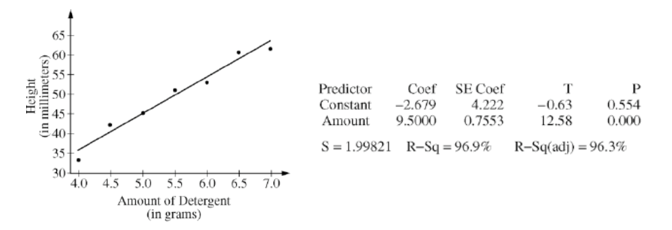Use the equation you created in #3 to predict the suds height for 5.75 grams of detergent.