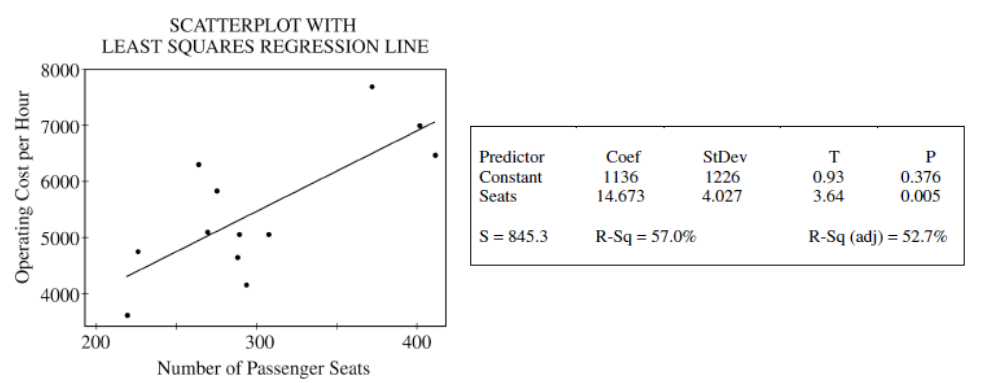 In a study of the relationship between operating cost per hour and number of passenger seats, investigators computed the regression of operating cost per hour on the number of passenger seats.