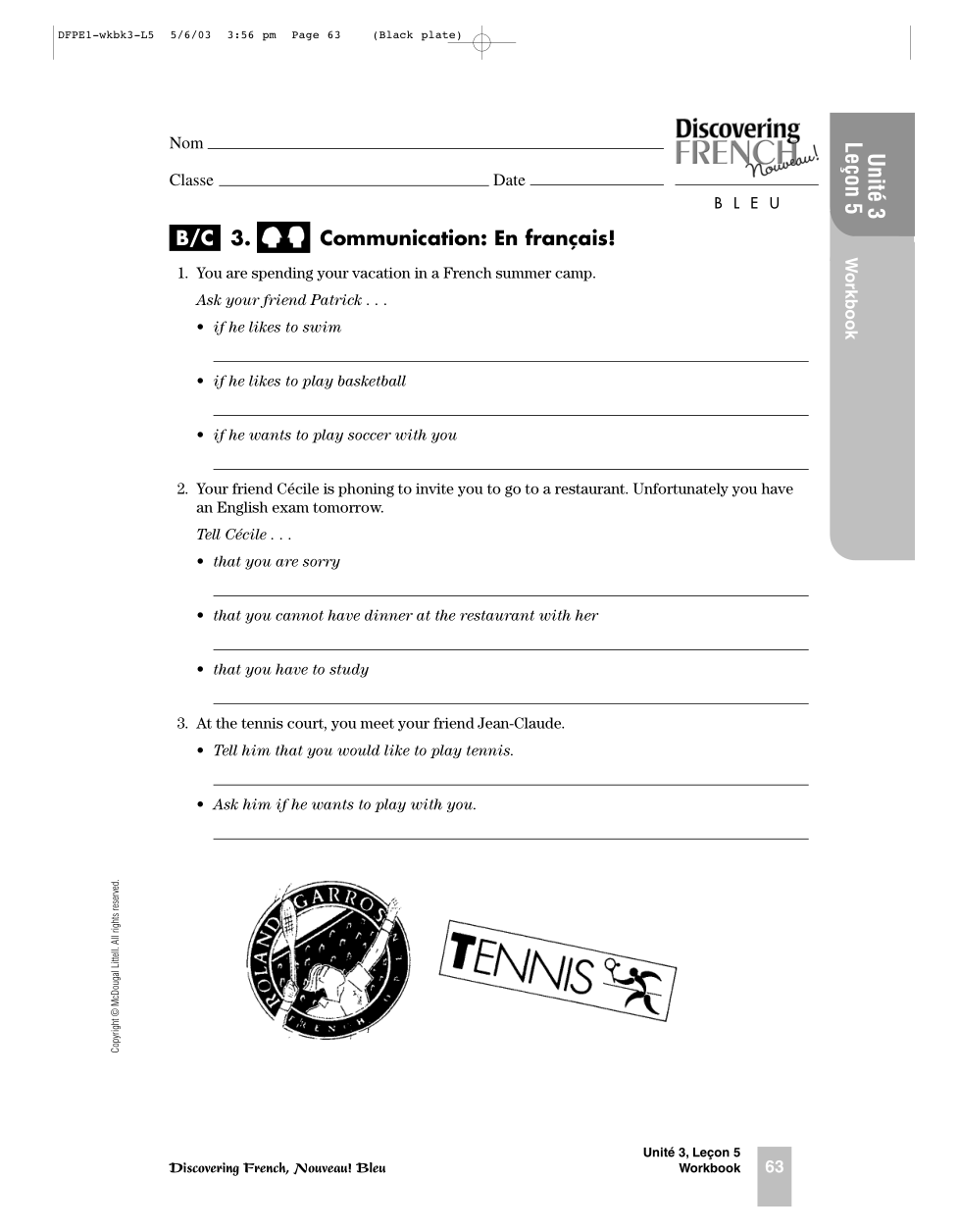 Ask this question in French using est-ce que (see pg 78 in your book for help)Can you play basketball?