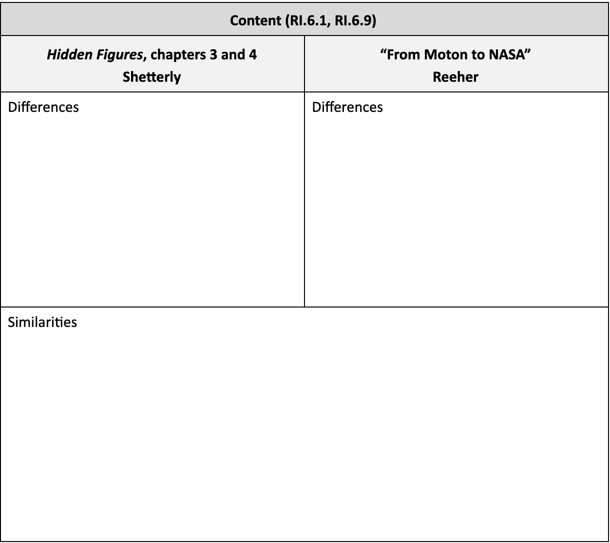 How is the content, or what the text talks about, of Hidden Figures different from "From Moton to NASA"?