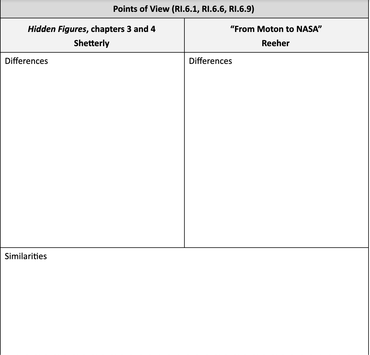 How is "From Moton to NASA" different from Hidden Figures based on Point of View?