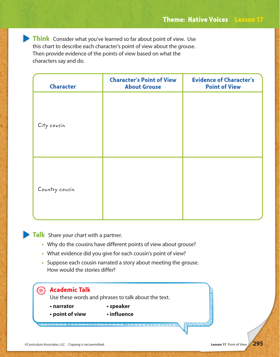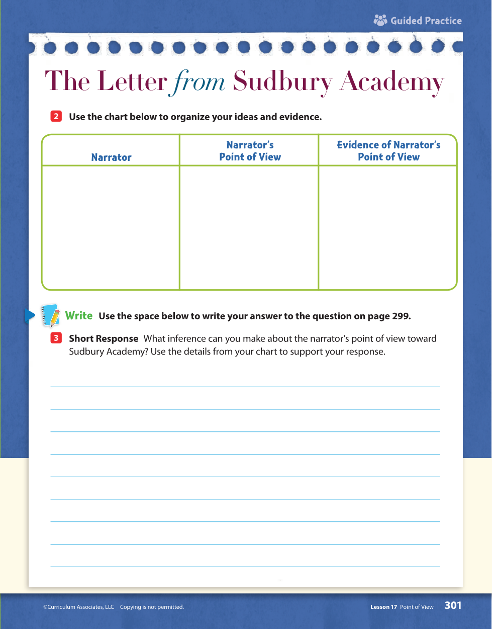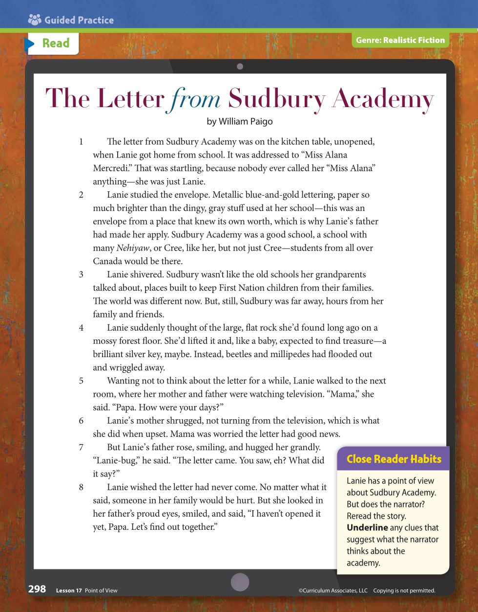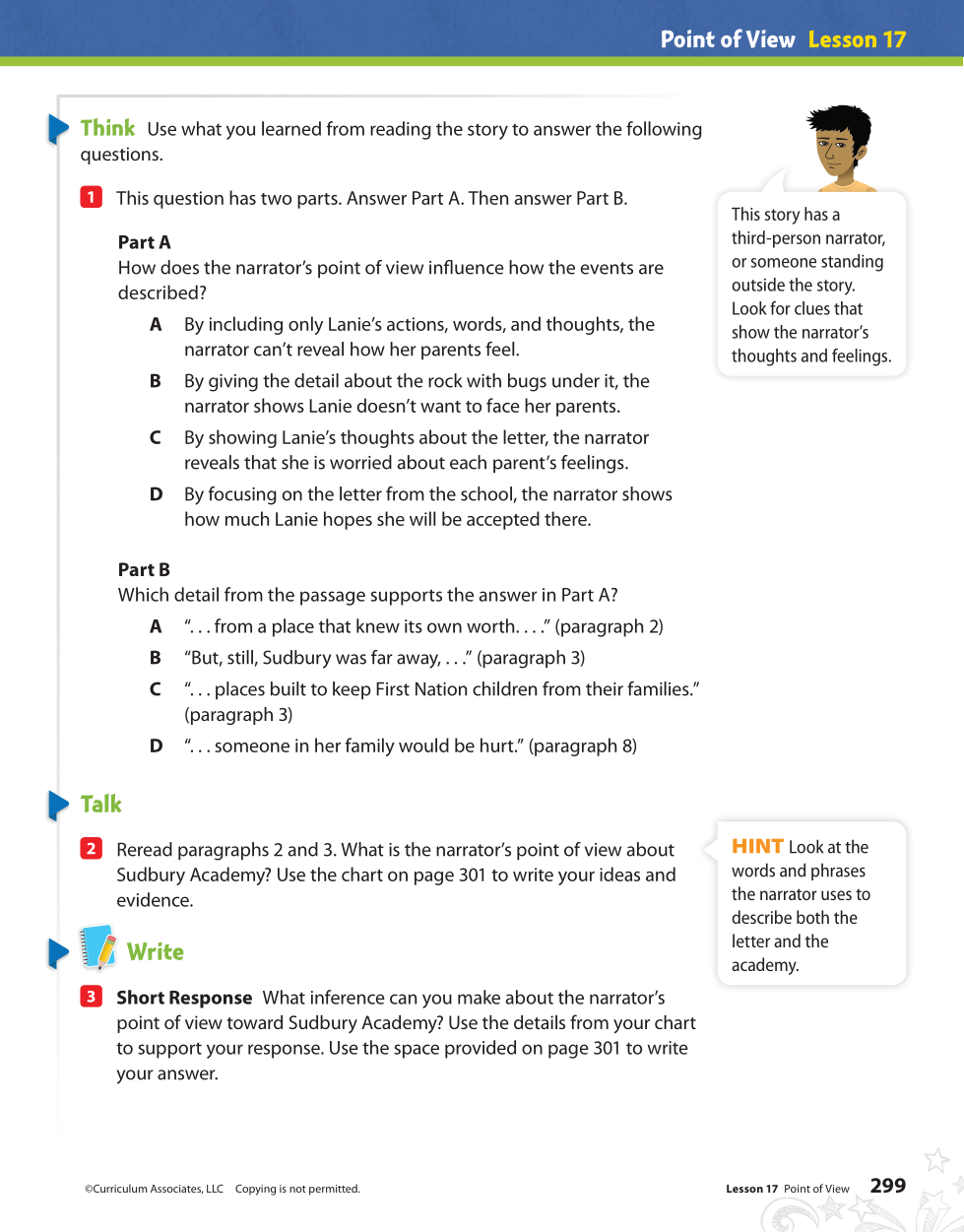 PRO TIP: Refer back to the anchor chart or the video if you get stuck. Remember to ask yourself, "Who is telling the story? The individual, a character, or a narrator?" This will help you figure out the POV.