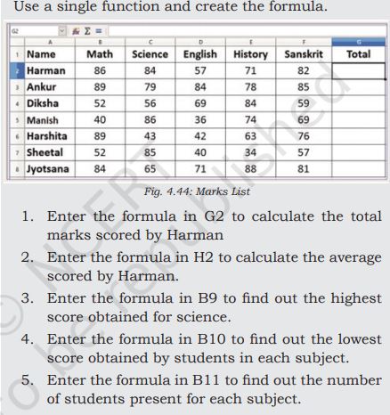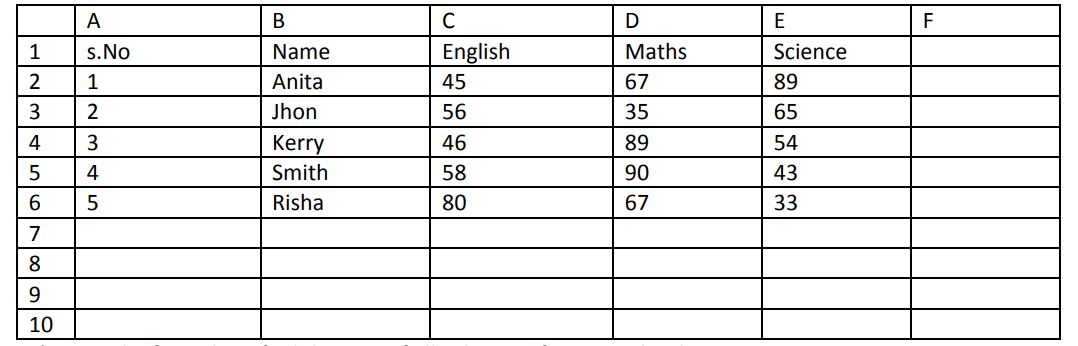 Q. 21 Aadya is working on a spreadsheet. Help her with the solutions for the following :
