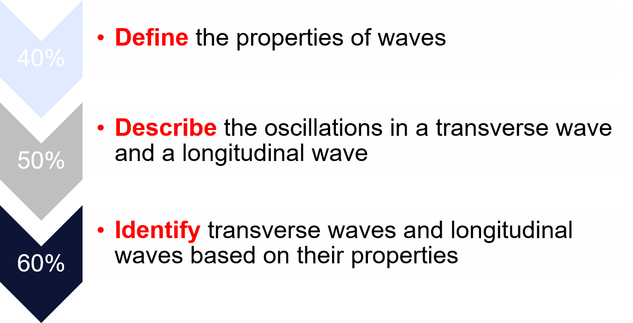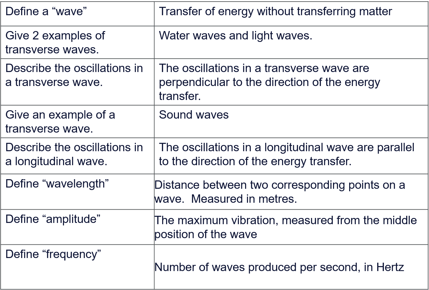 Energy can be created but not destroyedThe oscillations in a transverse wave are perpendicular to the direction of energy transfer