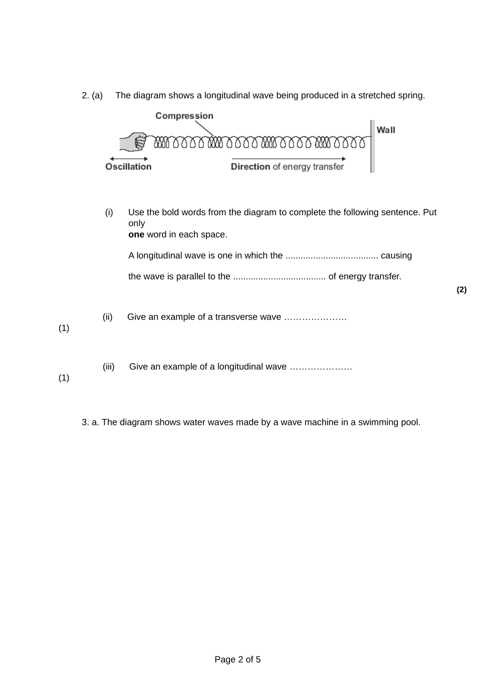 Copy and complete: The oscillation / vibration causing the wave for a longitudinal wave is____________ to the direction of __________ transfer.