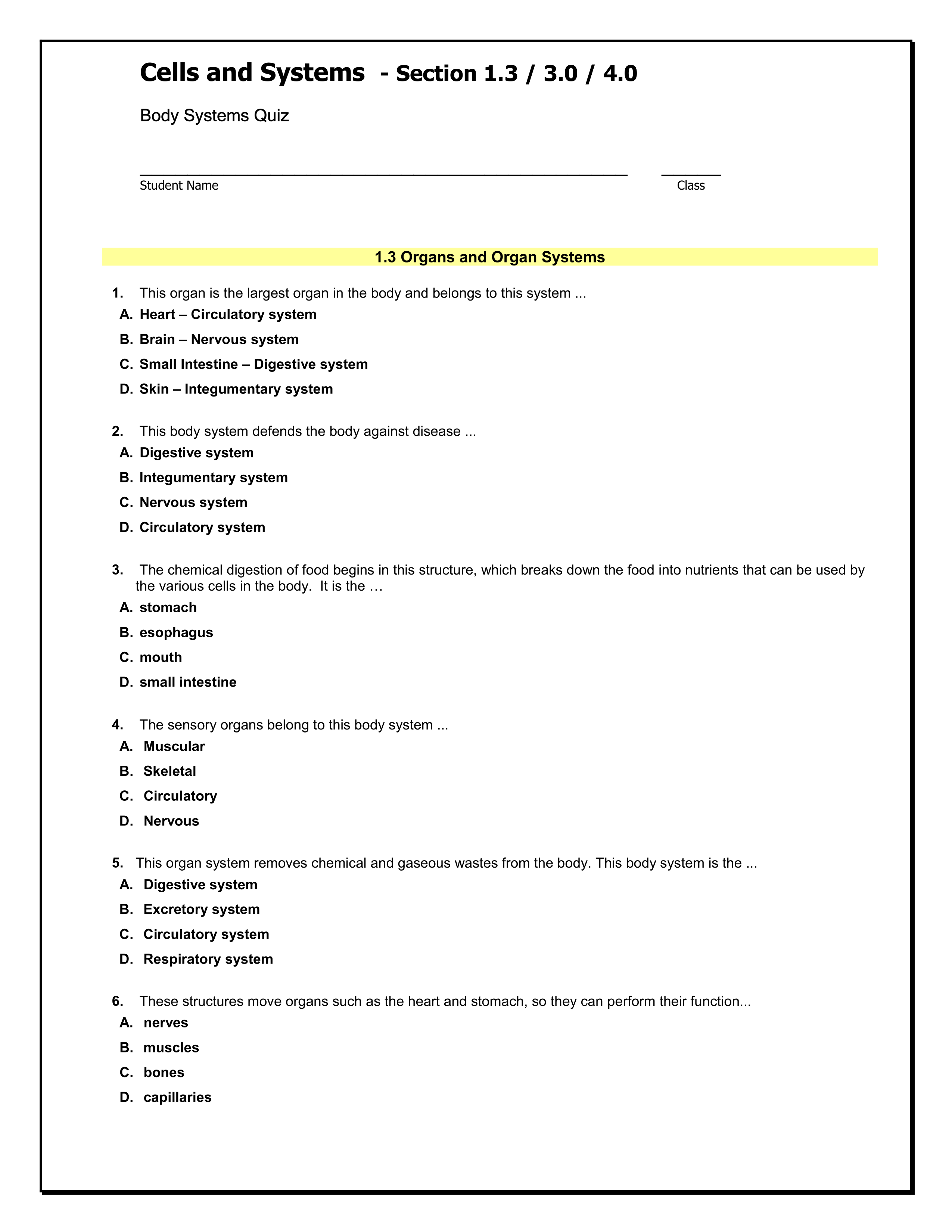 Science 8-2: Unit B: Cells and Systems: Section 3.0