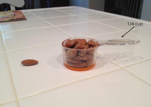 How many almonds are in the 1/4 cup?