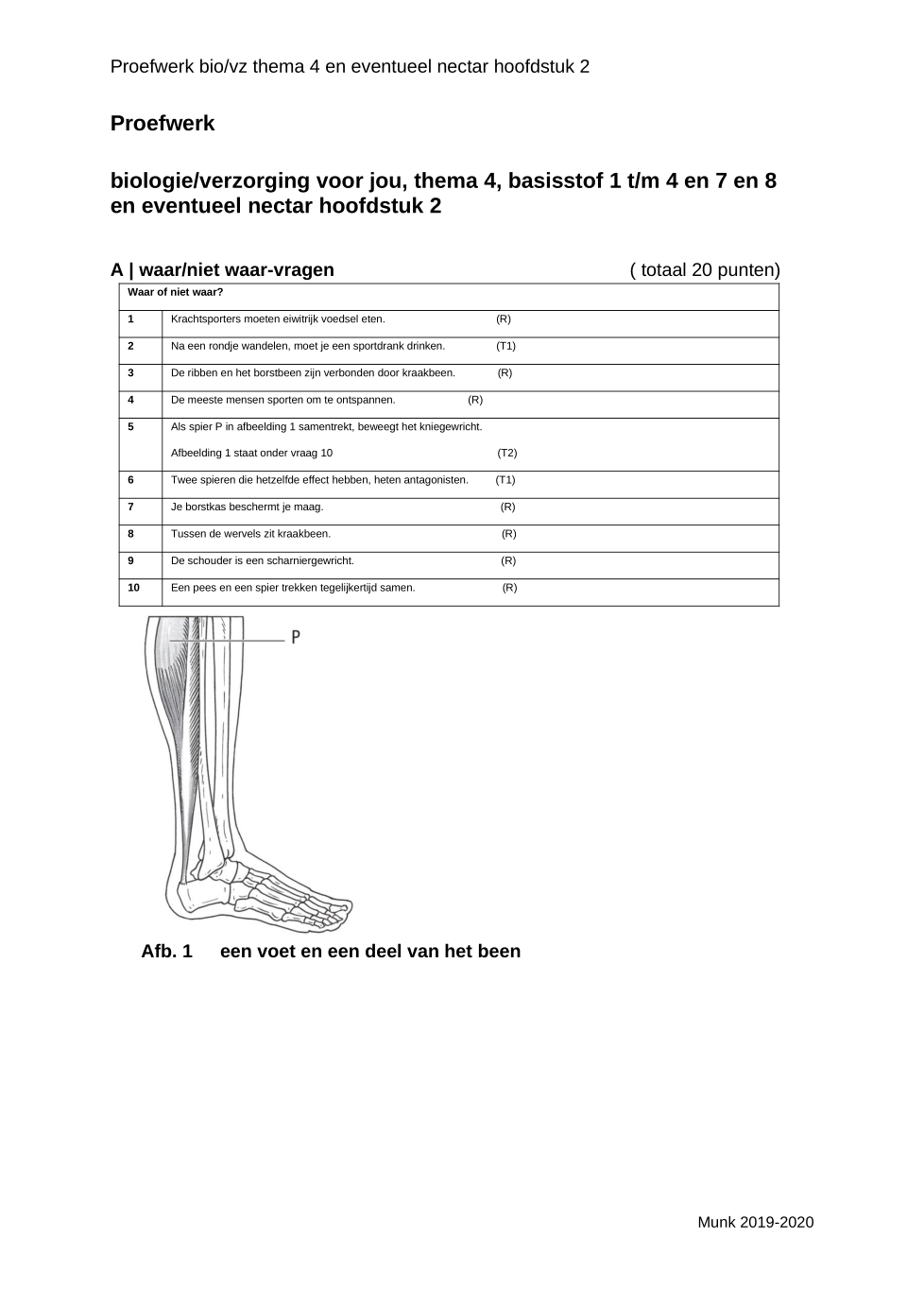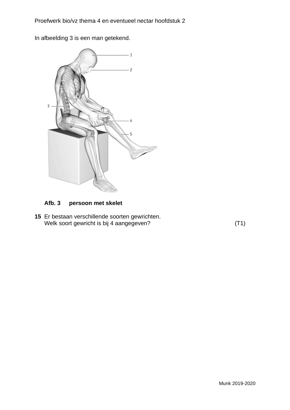 Als spier p in afbeelding 1 samentrekt beweegt het kniegewricht