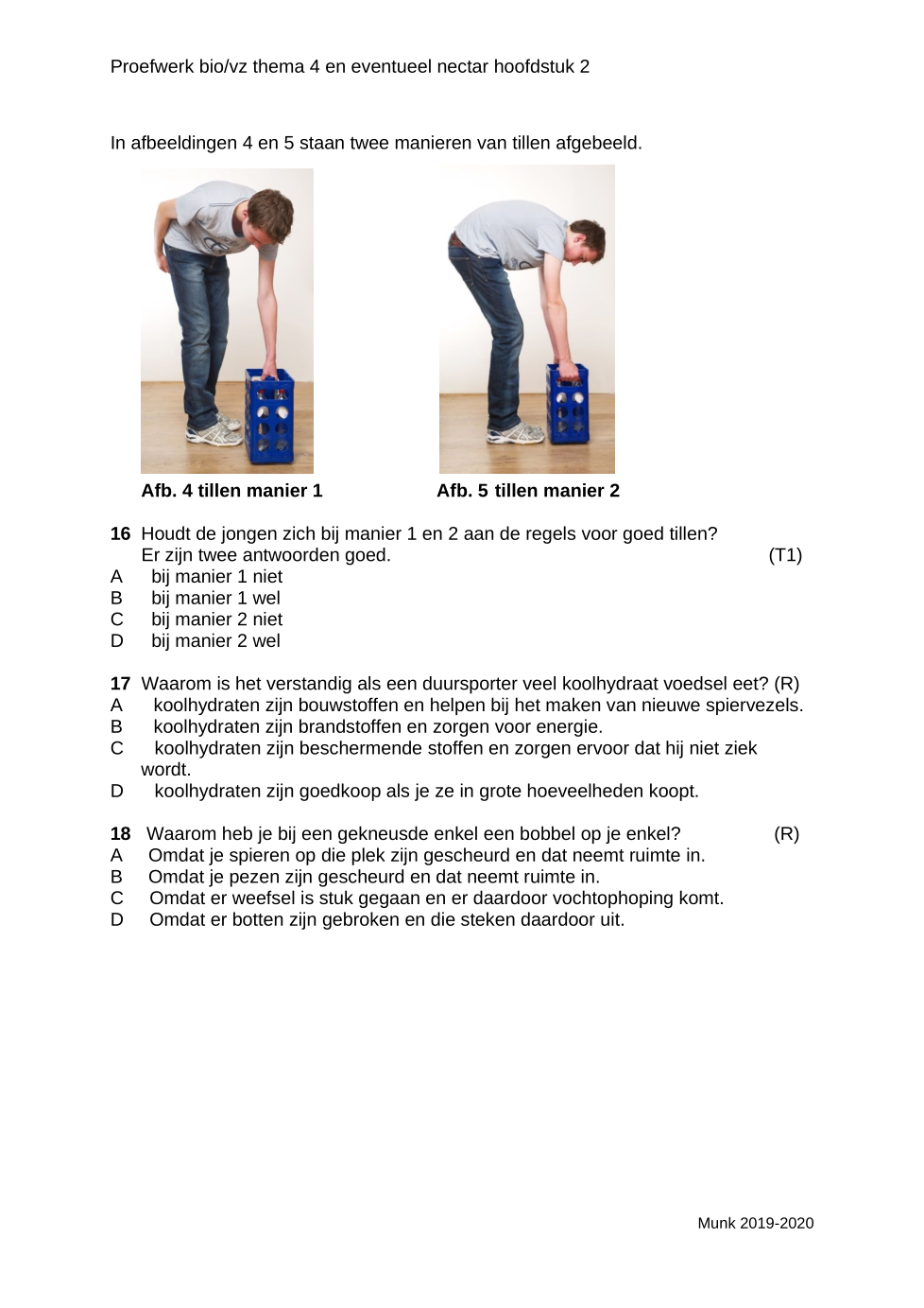 Houdt de jongen zich bij manier 1 en 2 aan de regels voor goed tillen? Er zijn twee antwoorden goed