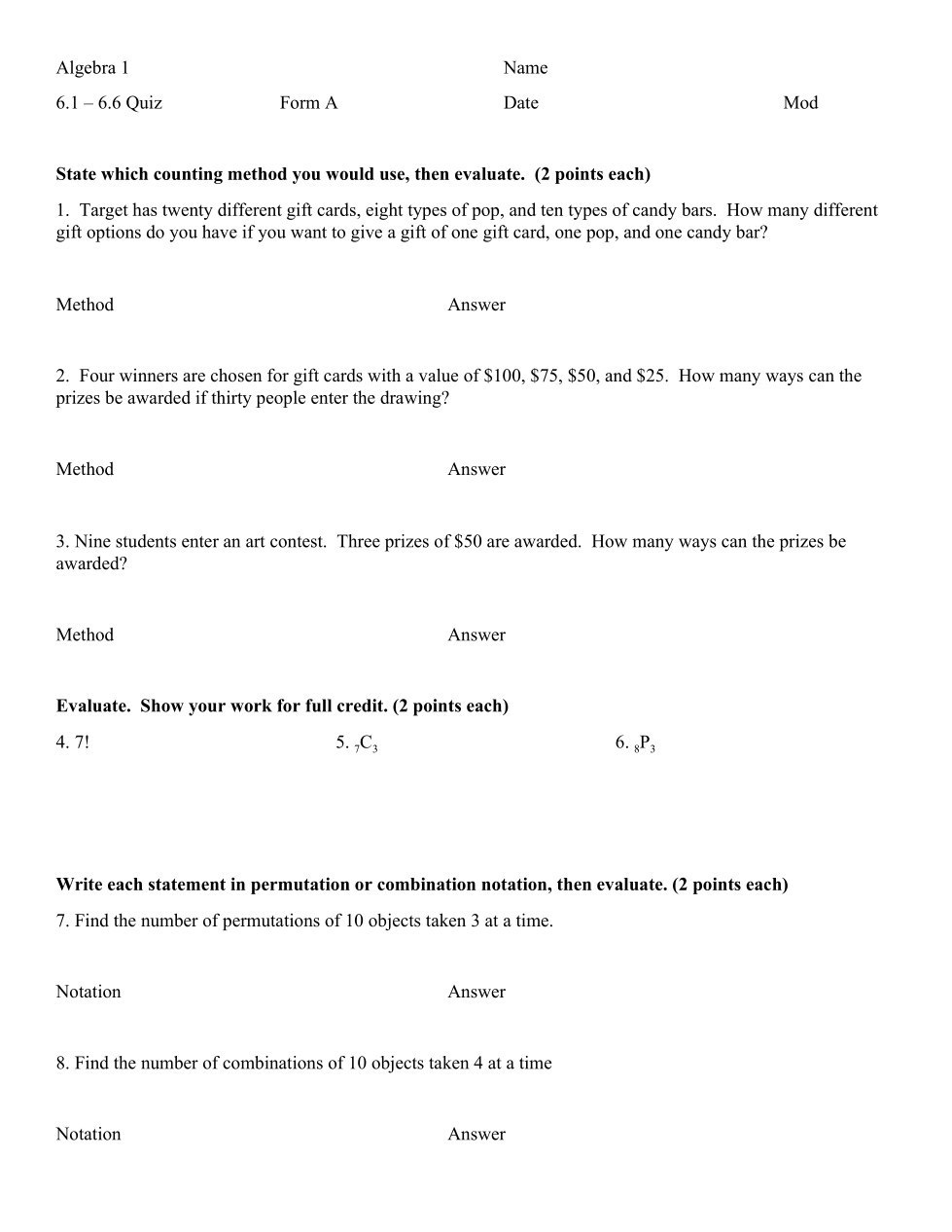 Find the probability that event A will NOT occur: P(A) = 1/8