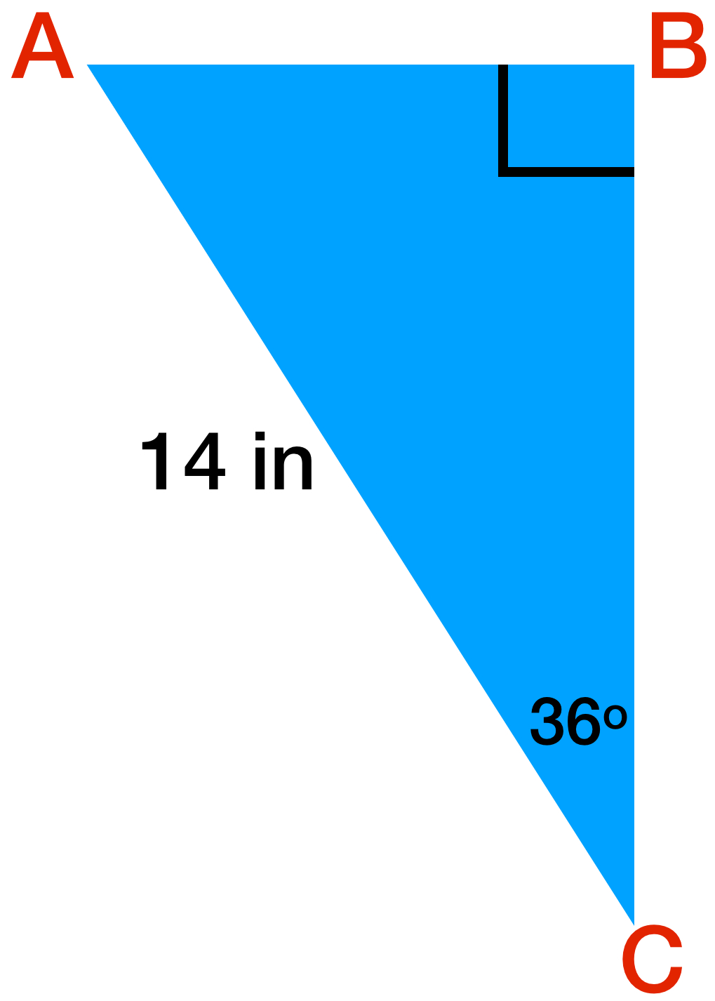 Violet is standing 45 feet from the base of her house. She looks up with an angle of elevation of 36o at a frisbee stuck on the roof of her house. What is the height of Violet’s house?