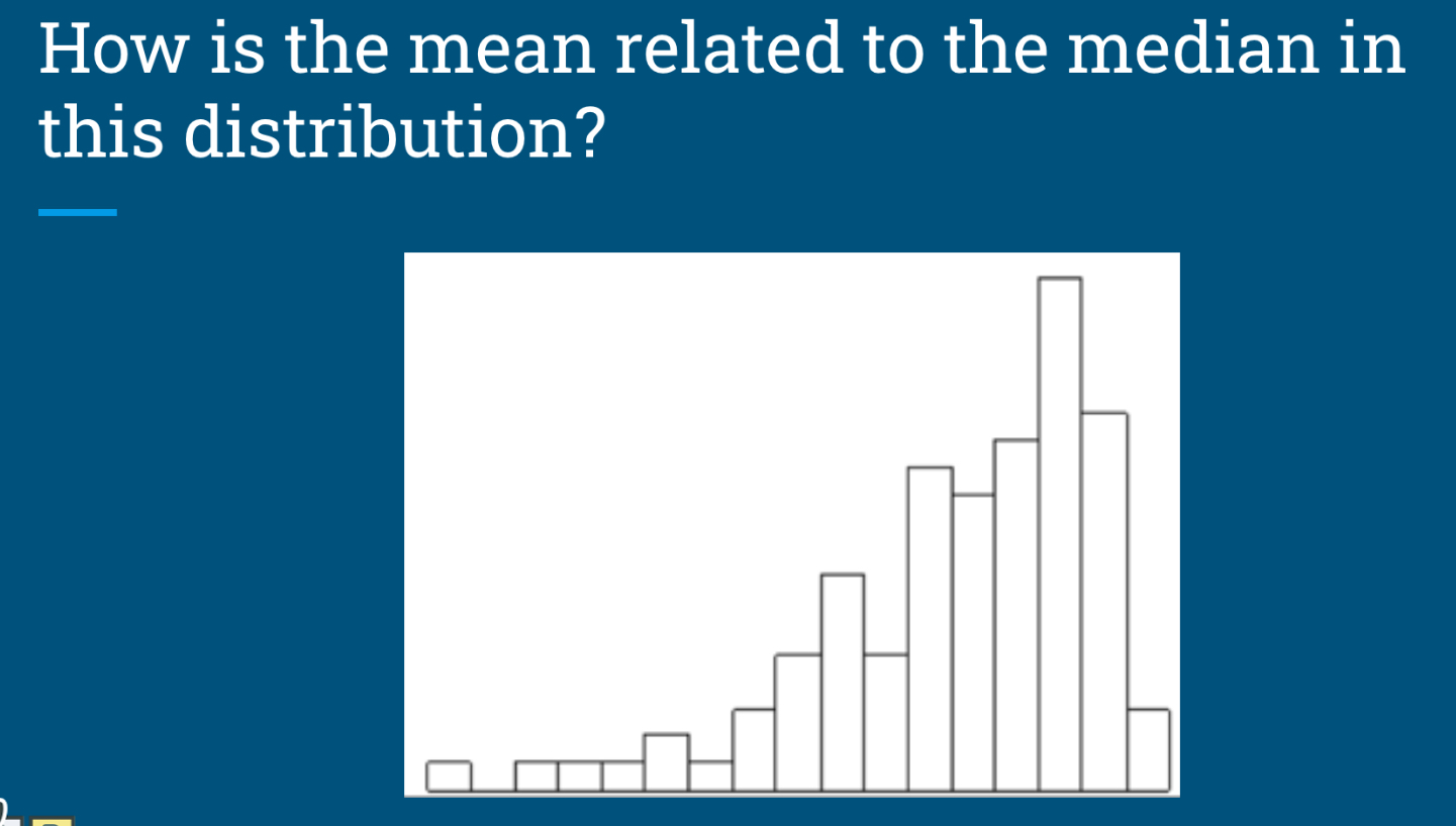 Match each type of distribution shape with the correct relationship between the mean and the median.