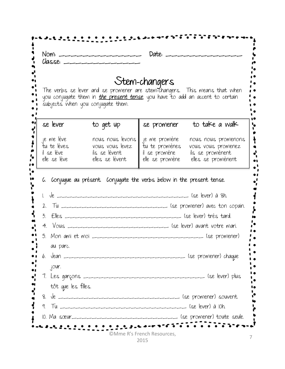 - I can conjugate pronominal verbs in the past and the present