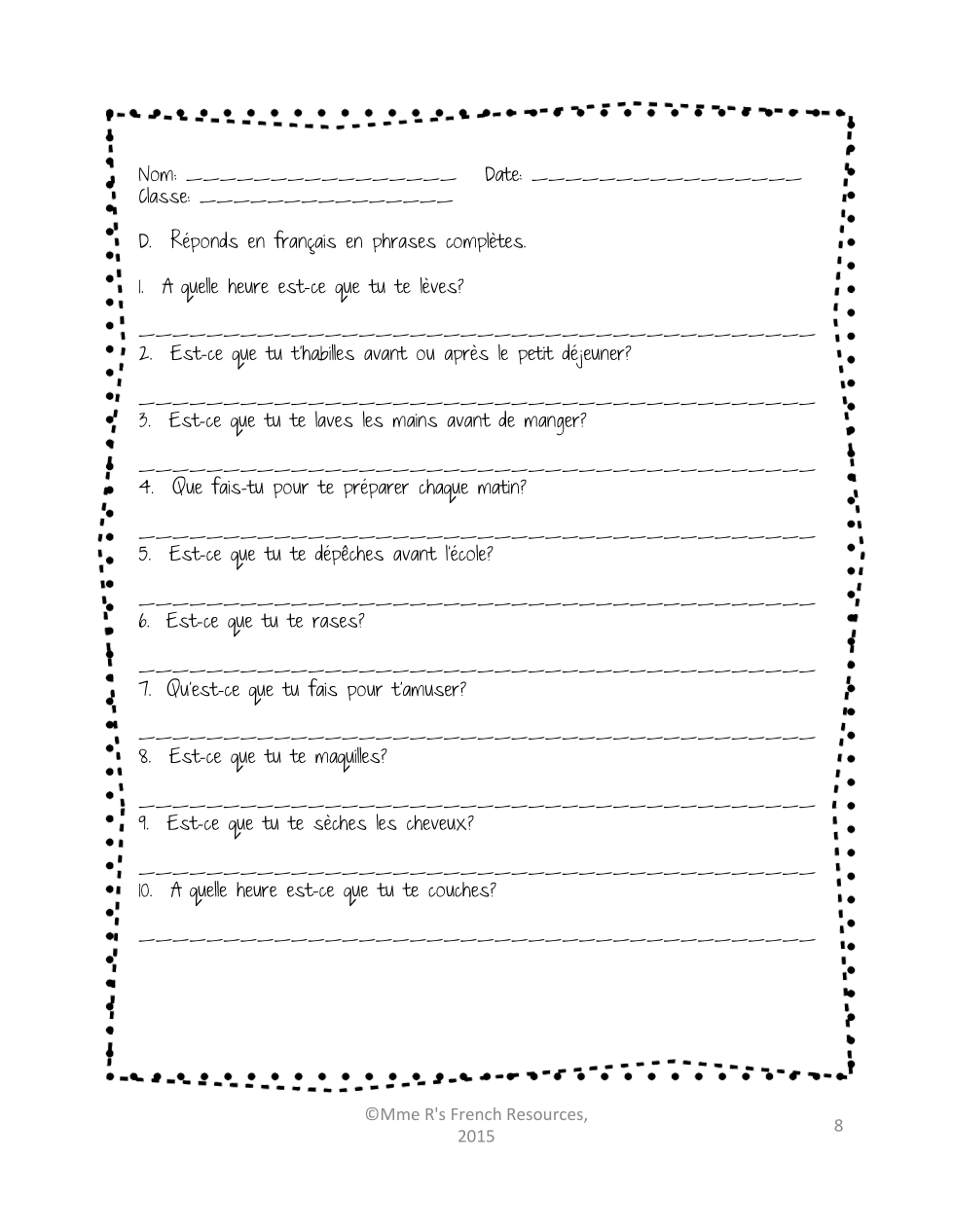 - I can interpret an authentic text about a Francophone person’s daily routine