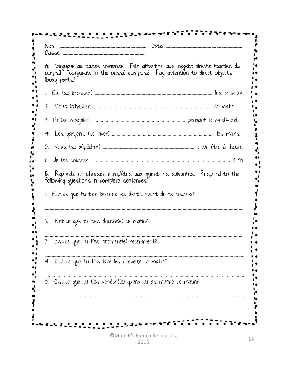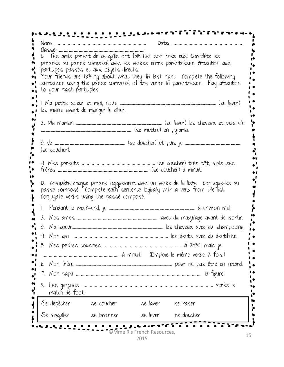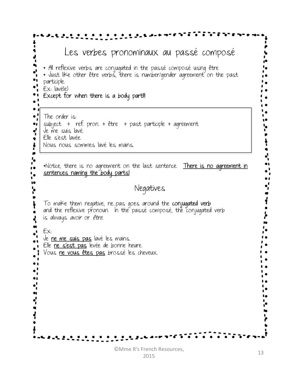 1) Watching the following video on pronominal verbs in the past tense or do the reading