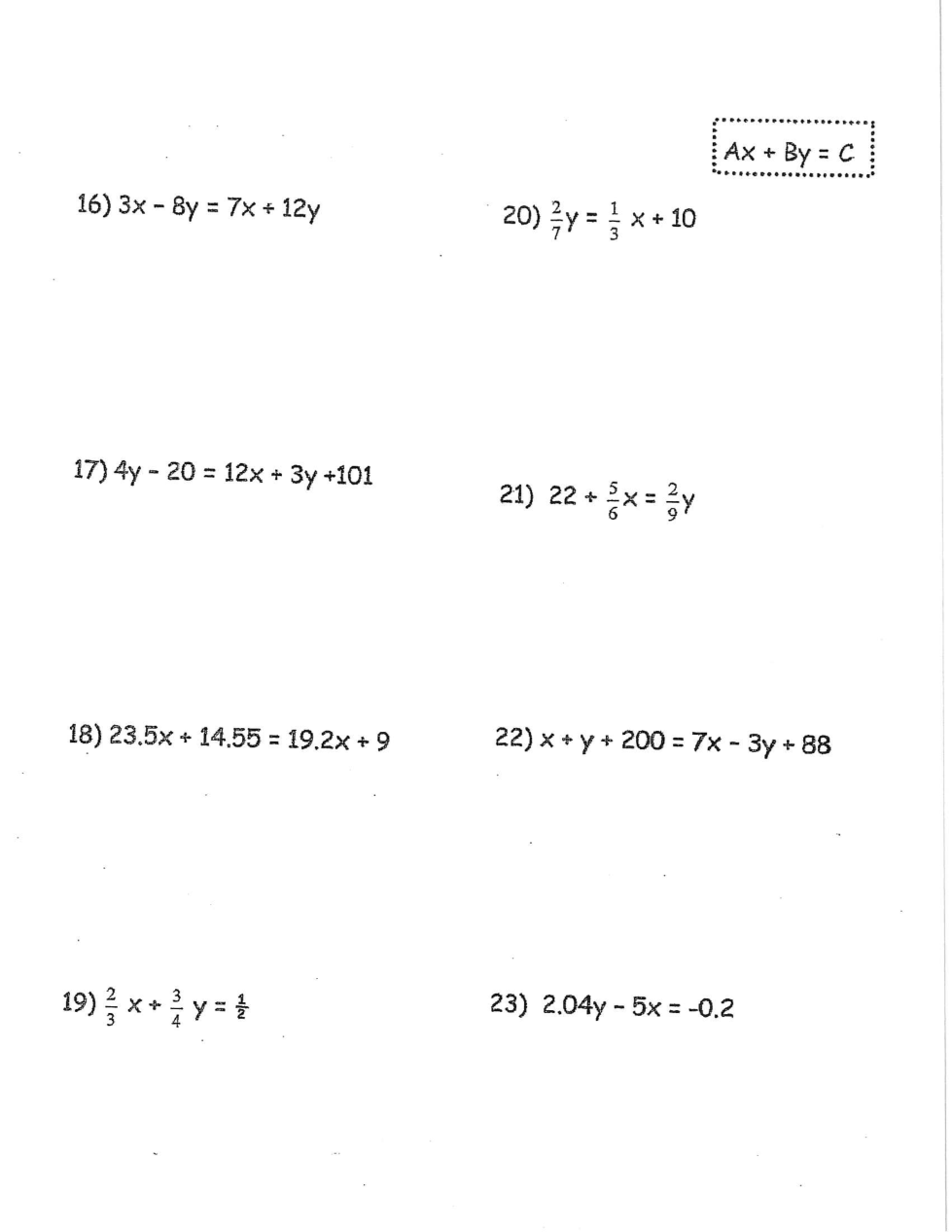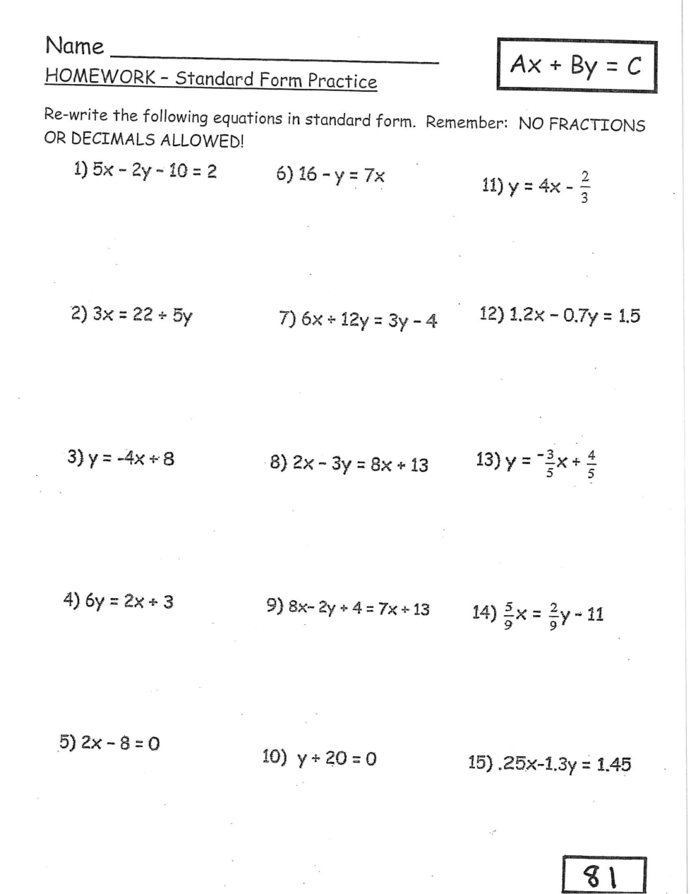 GRADED Classwork- Worksheet #81 (STANDARD FORM)