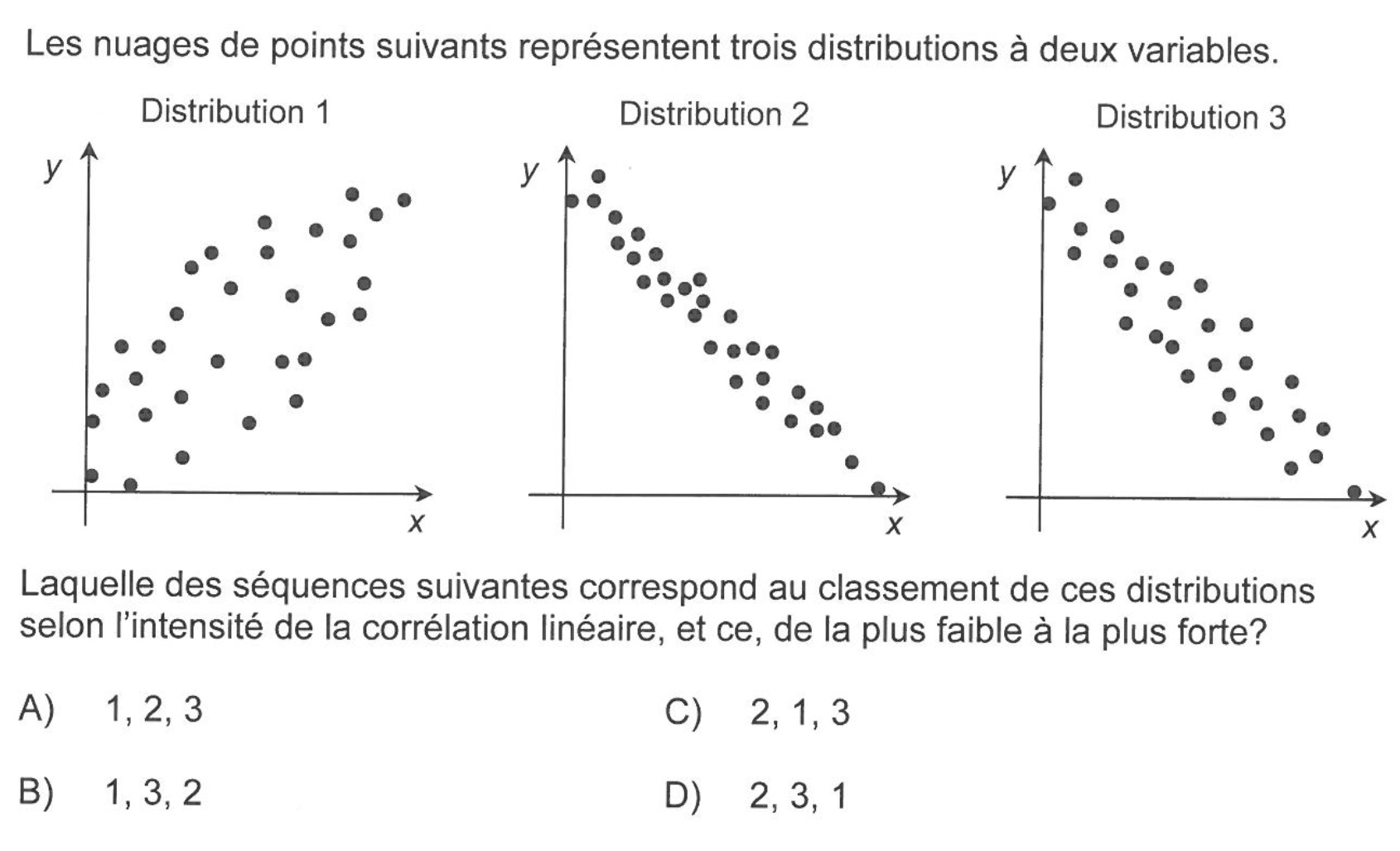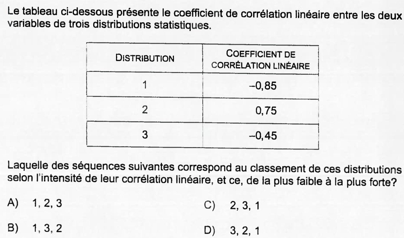 Selon le graphique, le coefficient de corrélation linéaire entre les deux variables est-il plus près de...