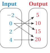 Complete a mapping diagram for the graph shown. Please label your input and output and have arrows going to the correct locations.