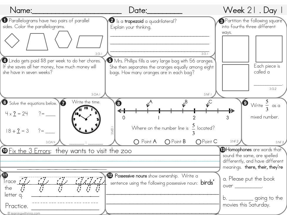 Morning work Mon. 1/11