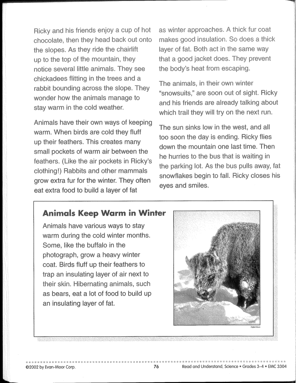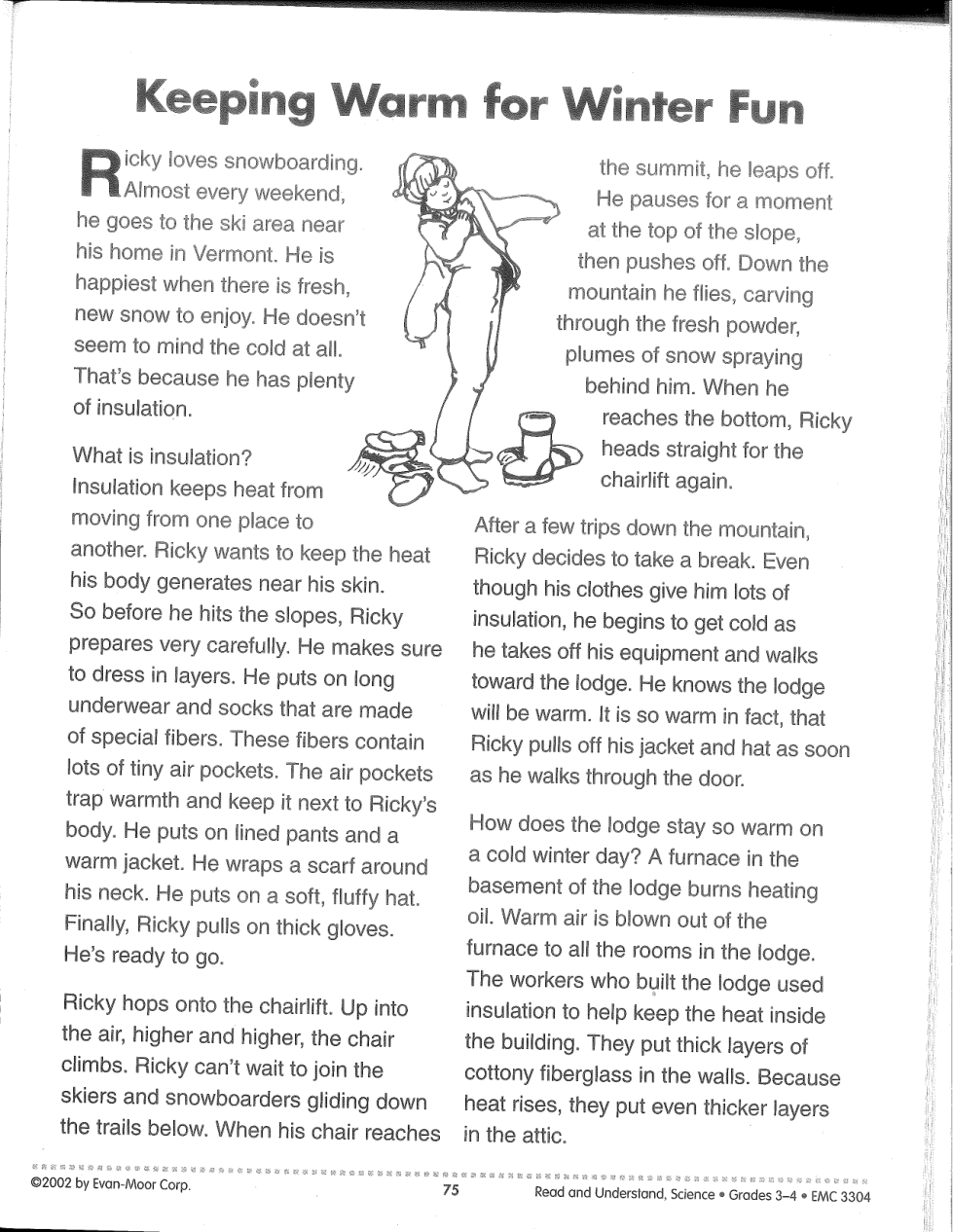 Layers of clothing help Ricky stay warm by trapping air.