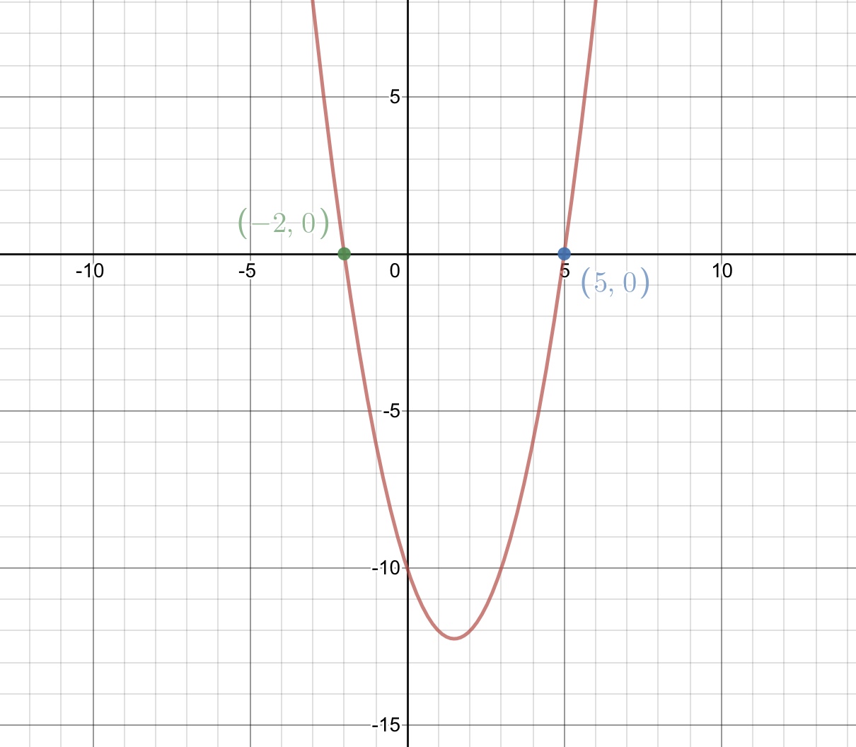- Determine x-intercepts by factoring, then solving a quadratic equation.