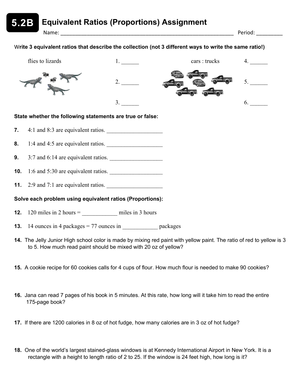 Write an equivalent ratio for:flies to lizards