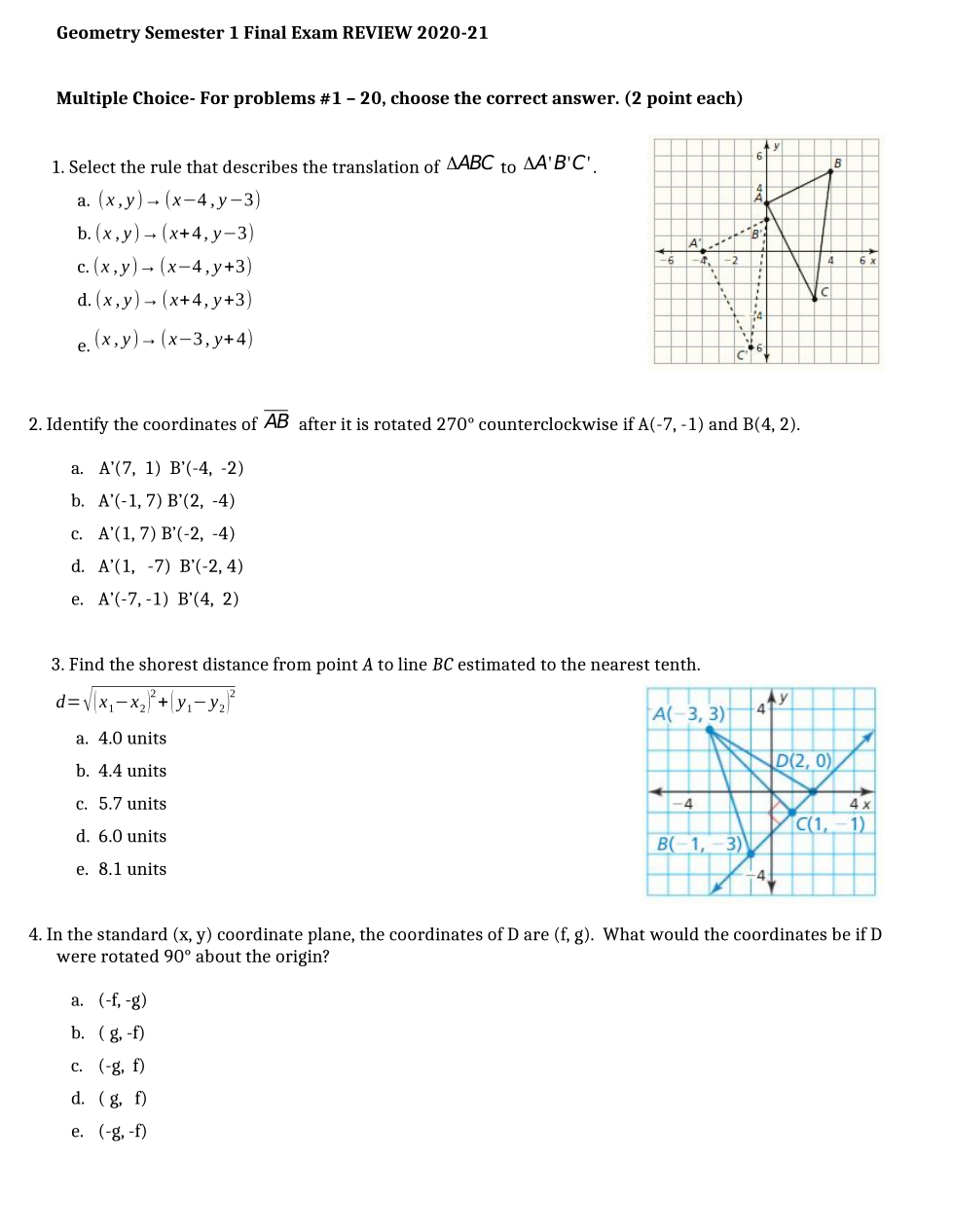 In the standard (x, y) coordinate plane, the coordinates of D are (f, g). What would the coordinates be if D were rotated 90 degrees about the origin?