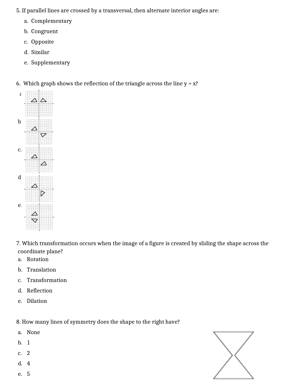 Which transformation occurs when the image of a figure is created by sliding the shape across the coordinate plane?