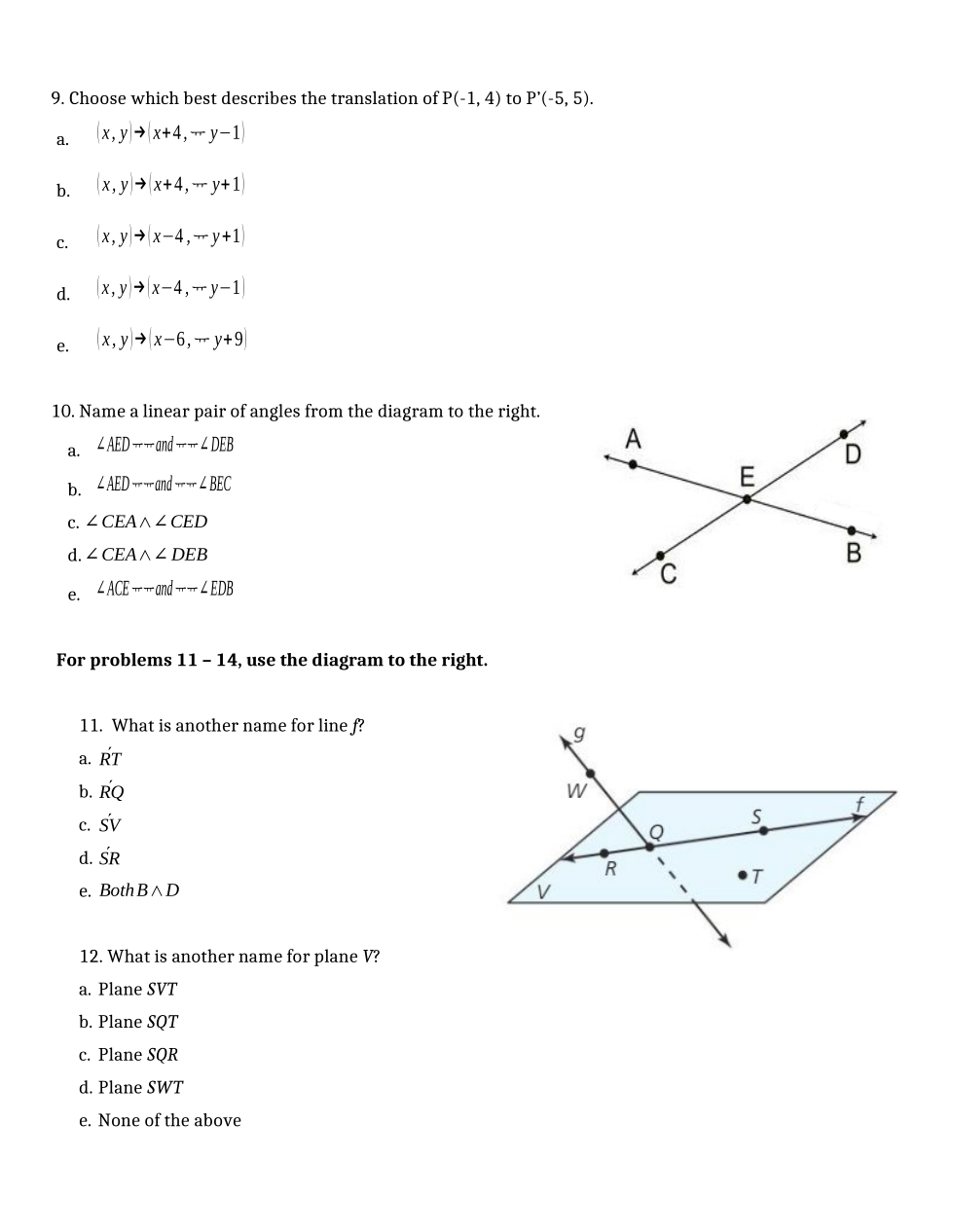 Choose which best describes the translation of P(-1, 4) to P'(-5, 5).