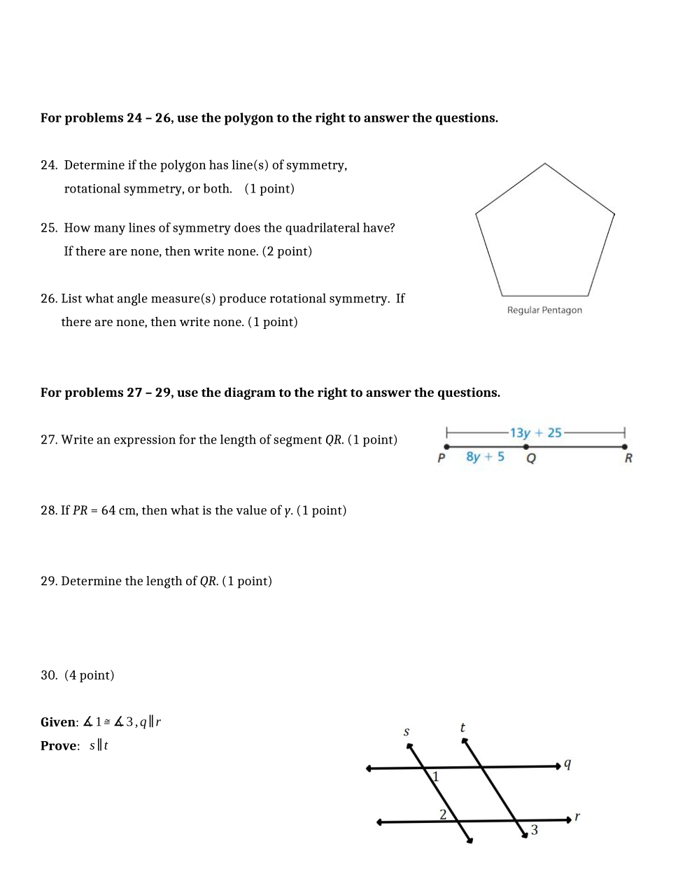 PROVE: If angle 1 is congruent to angle 3 and line q is parallel to line r, then line s is parallel to line t.